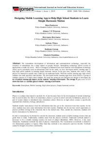 Pambayun, Bima, Wirjawan, Johannes V.D., Herwinarso, -, Wijaya, Anthony, Untung, GB and Pratidhina, Elisabeth (2019) Designing Mobile Learning App to Help High School Students to Learn Simple Harmonic Motion. International Journal on Social and Education Sciences, 1 (1). pp. 24-29. ISSN 2688-7061, Jurnal Internasional