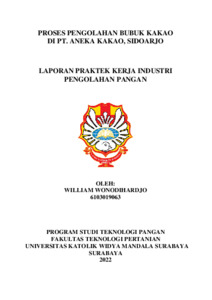 Wonodihardjo, William (2023) Proses pengolahan bubuk kakao di PT. Aneka Kakao, Sidoarjo. Project Report (PKL, PKIPP, Magang D3, Praktik Kerja Profesi Apoteker, Profesi Guru, Profesi Ners dan Profesi Insiyur). Faculty of Agricultural Technology, Surabaya, Indonesia. (Submitted)