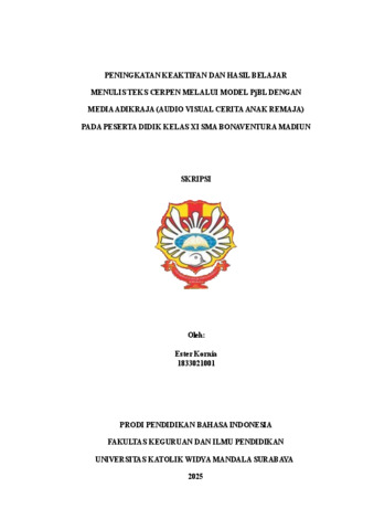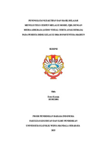 Kornia, Ester (2025) Peningkatan keaktifan dan hasil belajar menulis teks cerpen melalui model PjBL dengan media Adikraja (Audio Visual Cerita Anak Remaja). Undergraduate thesis, Widya Mandala Surabaya Catholic University.