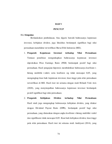 Uncontrolled Keywords: | Nilai perusahaan, keputusan investasi, kebijakan dividen, likuiditas, PER, DPR, CR, perusahaan manufaktur, Bursa Efek Indonesia |