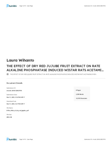 Ere, Maria Aloysia Praldinya, Hendrata, Adi Pramono and Wihanto, Laura (2023) The Effect of Dry Red Jujube Fruit Extract on Rate Alkaline Phosphatase Induced Wistar Rats Acetaminophen. Journal Of Widya Medika Junior, 5 (3). pp. 156-161. ISSN eISSN: 25651409