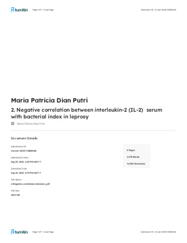 | Preview | Text (Negative correlation between interleukin-2 (IL-2) serum with bacterial index in leprosy) 2-Negative_correlation_between_.pdf Download (251kB) | Preview |