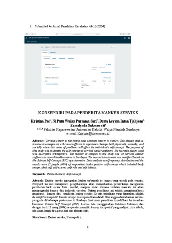 Pae, Kristina, Sari, Ni Putu Wulan Purnama, Tjahjono, Desta Levyna Intan and Sukmawati, Ermalynda KONSEP DIRI PADA PENDERITA KANKER SERVIKS. Jurnal Penelitian Kesehatan.
