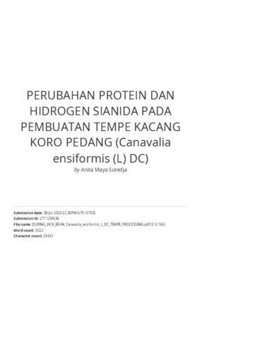Sutedja, Anita Maya, Ristiarini, Susana, Kuswardani, Indah, Epriliati, Indah, Aracelly, Vincensia Vania and Bawono, Fransisca Lanny Wahyuning PERUBAHAN PROTEIN DAN HIDROGEN SIANIDA PADA PEMBUATAN TEMPE KACANG KORO PEDANG (Canavalia ensiformis (L) DC). Jurnal Teknologi Pangan dan Gizi.
