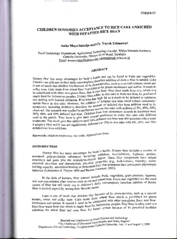 Sutedja, Anita Maya and Trisnawati, Chatarina Yayuk Children sensories acceptance to rice cake enriched with defatted rice bran. International Conference on Food Science and Technology.
