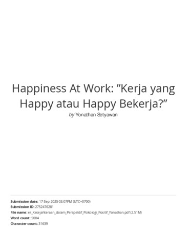 Setyawan, Yonathan (2022) Happines at work: "kerja yang happy atau happy bekerja?". In: Kesejahteraan dalam perspektif psikologi positif. Universitas Katolik Widya Mandala Surabaya, Surabaya, pp. 55-71. ISBN 978-623-97454-6-2