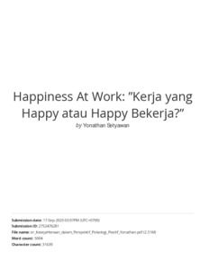Text (Happines at work: "kerja yang happy atau happy bekerja?")