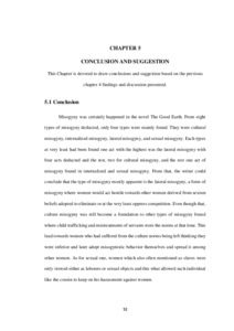 Misogyny still permeates in the present in which people would still objectifying women or simply oppress them to only stick to their traditional gender role of nurture. The writer thought that this kind of situation should be known widely or at the very least as far this study could reach This study aims to find the misogynistic act and behavior happening within the novel The Good Earth by Pearl S. Buck. In order to reach the goal of this study, the writer had stated these statements of problems. First one would be finding types of misogyny embedded in the novel. Second one would be seeking the reaction of characters involved within the act of misogyny whether they are directly involved or not. Literacy analysis is used for the research method along with Mimetic approach for the analytical technique. The research was carried out by analyzing the act of misogyny done by the characters appeared in the Novel The Good Earth. The writer would deduct the act of misogyny taken from the dialogue or text from and organize them based on their type of misogyny.(need 2 more sentences for findings) From this research, the writer hoped that this study would bring more attention to how destructive on having misogynistic perspective in the present. Knowing this, would give more people awareness and acknowledgement of the very pattern of misogyny itself thus benefiting people to learn to become a better person.
