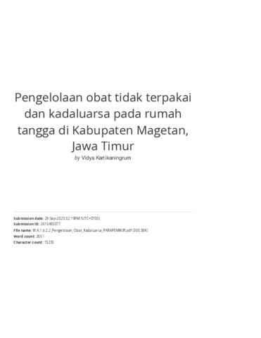 Text (Pengelolaan obat tidak terpakai dan kadaluarsa pada rumah tangga di Kabupaten Magetan, Jawa Timur)