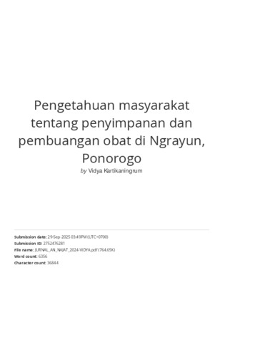 Text (Pengetahuan masyarakat tentang penyimpanan dan pembuangan obat di Ngrayun, Ponorogo)