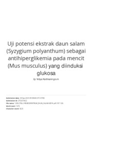 Text (Uji potensi ekstrak daun salam (Syzygium polyanthum) sebagai antihiperglikemia pada mencit (Mus musculus) yang diinduksi glukosa)