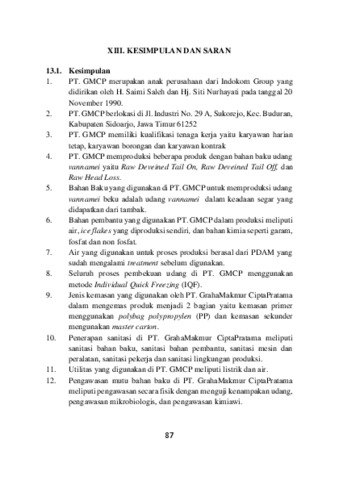 | Uncontrolled Keywords: | PT. GMCP Sidoarjo, udang vanamei, udang mentah beku |