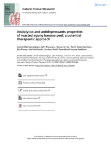 Hadisoewignyo, Lannie, Prasetyo, Jefri, Foe, Kuncoro, Santoso, Kevin Owen, Hestianah, Eka Pramhyrta, Parwitha, Ida Ayu Andri and Soeliono, Ivonne Anxiolytics and antidepressants properties of roasted agung banana peel: a potential therapeutic approach. Natural Product Research. pp. 1-5. ISSN 1478-6427