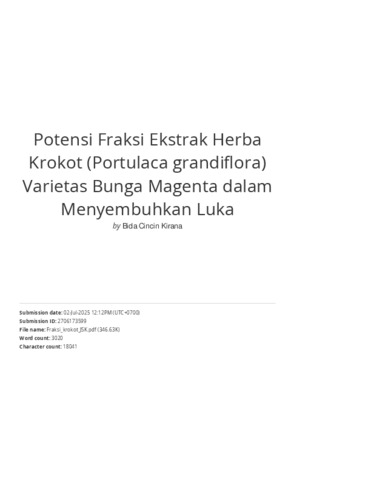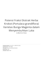 Text (Potensi fraksi ekstrak herba krokot (Portulaca grandiflora) varietas bunga magenta dalam penyembuhan luka)