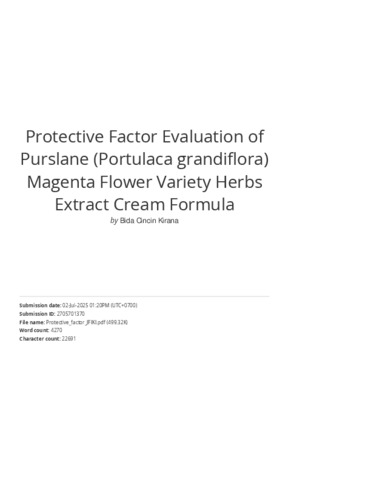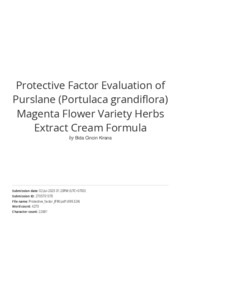 Text (Protective factor evaluation of purslane (Portulaca grandiflora) magenta flower variety herbs extract cream formula)