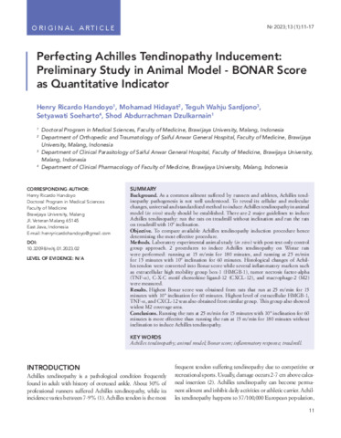 Text (Perfecting Achilles Tendonopathy Inducement : Preliminary Study in Animal Model – BONAR Score as Quantitative Indicator)