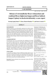 Irianto, Komang Agung, Handoyo, Henry Ricardo and Leonarto, Enrico (2023) Release of Retromalleolar Flexor Retinaculum and Combined Flexor Digitorum Longus and Flexor Hallucis Longus Z-Plasty in Checkrein Doformity : A Case Report. Universa Medicina, 42 (3). pp. 368-373. ISSN p-ISSN : 19073062, e-ISSN : 24072230