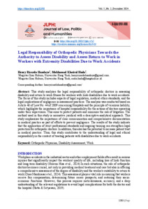 Handoyo, Henry Ricardo and Huda, Muhammad Khoirul (2024) Legal Responsibility of Orthopedic Physicians Towards the Authority to Assess Disability and Assess Return to Work in Workers with Extremity Disabilities Due to Work Accidents. JLPH: Jurnal of Law, Politic and Humaniora, 5 (2). pp. 1203-1209. ISSN pISSN: 2747985, eISSN: 29622816