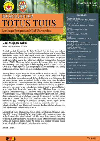 Lembaga Penguatan Nilai Universitas (LPNU), . (2025) Newsletter Totus Tuus. Newsletter Totus Tuus, 4.48. (Submitted)