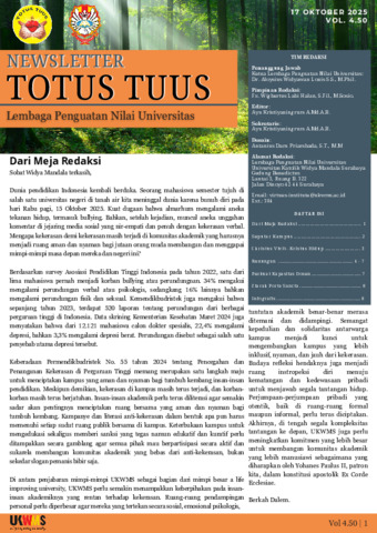 Lembaga Penguatan Nilai Universitas (LPNU), . (2025) Newsletter Totus Tuus. Newsletter Totus Tuus, 4.50. (Submitted)