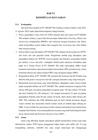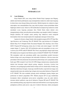 Program Kerja Praktek dilaksanakan pada periode 1 Juli hingga 31 Agustus 2025 di PT Sinar Mas Agro Resources and Technology Tbk (PT SMART Tbk), yang berlokasi di Jl. Rungkut Industri Raya No.19, Rungkut Kidul, Kecamatan Rungkut, Surabaya, Jawa Timur, Indonesia. PT SMART Tbk merupakan perusahaan publik terkemuka di Indonesia yang bergerak dalam industri produk konsumen berbasis kelapa sawit secara terintegrasi. Perusahaan ini meliputi aktivitas mulai dari penanaman dan panen kelapa sawit, pengolahan tandan buah segar (TBS) menjadi Crude Palm Oil (CPO), hingga pengolahan lebih lanjut menjadi produk industri dan konsumen seperti minyak goreng, margarin, shortening, biodiesel, oleokimia, serta perdagangan produk kelapa sawit ke pasar global. Produk-produk terkenal dari perusahaan antara lain minyak goreng Filma, Kunci Mas, Mitra, Masku, margarin Filma, Palmboom, shortening Filma Butter Oil Substitute (BOS), dan specialty fat i-soc CBS 35. PT SMART Tbk dipimpin oleh seorang General Manager (GM) yang dibantu oleh kepala-kepala departemen dan bagian dengan ruang lingkup kerja masing-masing. Pada unit pengolahan air, terdapat seorang supervisor yang mengawasi mandor (foreman) dan sembilan operator yang bertugas. Selama program berjalan, banyak ilmu baru yang diperoleh dan diaplikasikan langsung ke dalam proses produksi. Proses pengolahan CPO menjadi produk beragam merek melalui dua tahapan utama, yakni tahap pemurnian (refinery) yang meliputi degumming, bleaching, dan deodorizing secara kontinu, serta tahap fraksinasi secara batch yang terbagi dalam proses kristalisasi dan filtrasi. Unit pengolahan air terdiri menjadi pengolahan air baku dan pengolahan air limbah. Pengolahan air baku menggunakan air PDAM yang diolah sesuai spesifikasi teknis melalui proses adsorpsi, penyaringan, pertukaran kation (cation exchange), dan filtrasi dengan sistem Reverse Osmosis (RO). Pada pengolahan air limbah, seluruh limbah cair dari proses produksi dan operasional seperti washing, splitting, dan neutralizing, air blowdown dari boiler, cooling tower, chiller, serta limbah domestik diolah menggunakan proses kimia koagulasi dan flokulasi yang dibantu teknologi Dissolved Air Flotation (DAF). Koagulan yang digunakan adalah Poly Aluminium Chloride (PAC) tipe 280 AN dan flokulan yang dipakai adalah polimer anionik tipe 240 (PA 240. Dalam pengolahan limbah cair dengan metode koagulasi dan flokulasi, diperlukan penentuan dosis bahan kimia serta kondisi proses yang tepat agar biaya operasional dapat ditekan tanpa mengurangi efektivitas proses. Penentuan ini dilakukan melalui percobaan bertahap menggunakan metode Jar Test dengan variasi terbaik yaitu dosis koagulan PAC sebesar 600 ppm, kecepatan pengadukan koagulasi pada 150 rpm selama 150 detik, dan dosis flokulan PA 240 sebesar 25 ppm, kecepatan pengadukan flokulasi pada 40 rpm selama 20 menit. Hasilnya didapat penurunan signifikan pada turbiditas, Total Suspended Solids (TSS), Chemical Oxygen Demand (COD) dan kadar minyak pada limbah. Selanjutnya, hasil tersebut diubah ke dalam perhitungan laju alir koagulan dan flokulan serta waktu tinggal pada reaktor DAF sebagai representasi aplikasi langsung untuk unit WWTP PT SMART Tbk.