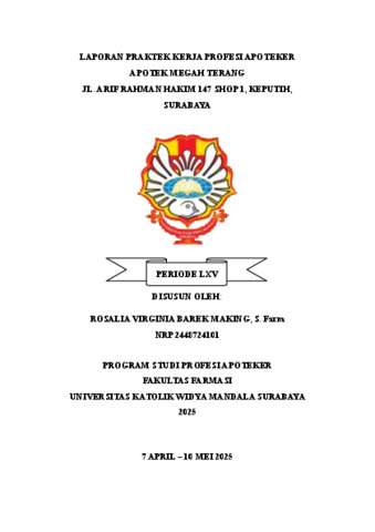 Making, Rosalia Virginia Barek (2025) Laporan praktek kerja profesi apoteker di apotek Megah Terang Jl. Arif Rahman Hakim 147 Shop 1, Keputih, Sukolilo, Surabaya 7 April - 10 Mei 2025. Project Report (PKL, PKIPP, Magang D3, Praktik Kerja Profesi Apoteker, Profesi Guru, Profesi Ners dan Profesi Insiyur). Faculty of Pharmacy, Surabaya, Indonesia. (Submitted)