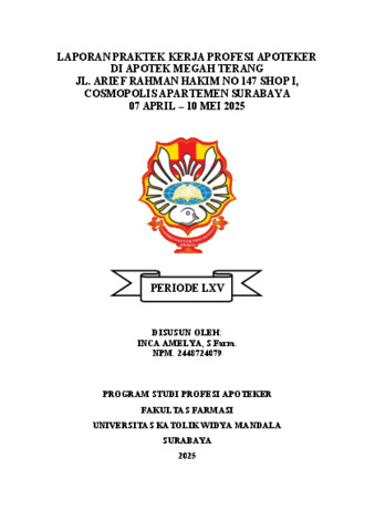 Amelya, Inca (2025) Laporan praktek kerja profesi apoteker di Apotek Megah Terang Jl. Arief Rahman Hakim no. 147 Shop I Cosmopolis Apartemen Surabaya 07 April - 10 Mei 2025. Project Report (PKL, PKIPP, Magang D3, Praktik Kerja Profesi Apoteker, Profesi Guru, Profesi Ners dan Profesi Insiyur). Faculty of Pharmacy, Surabaya. (Submitted)