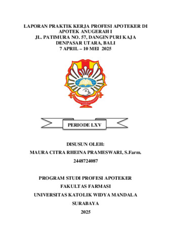 Prameswari, Maura Citra Rheina (2025) Laporan praktik kerja profesi apoteker di Apotek Anugerah I Jl. Patimura No. 57, Dangin Puri Kaja Denpasar Utara, Bali 7 April – 10 Mei 2025. Project Report (PKL, PKIPP, Magang D3, Praktik Kerja Profesi Apoteker, Profesi Guru, Profesi Ners dan Profesi Insiyur). Faculty of Pharmacy, Surabaya. (Submitted)