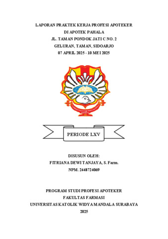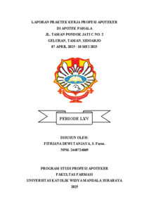 Tanjaya, Fitriana Dewi (2025) Laporan praktek kerja profesi apoteker di Apotek Pahala Jl. Taman Pondok Jati C No. 2 Geluran, Taman, Sidoarjo 07 April 2025-10 Mei 2025. Project Report (PKL, PKIPP, Magang D3, Praktik Kerja Profesi Apoteker, Profesi Guru, Profesi Ners dan Profesi Insiyur). Faculty of Pharmacy, Surabaya. (Submitted)