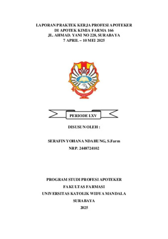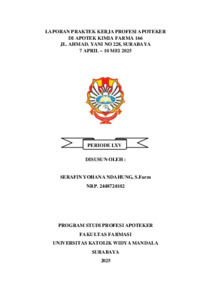 Ndahung, Serafin Yohana (2025) Laporan praktek kerja profesi apoteker di apotek Kimia Farma 166 JL.AHMAD.YANI No. 288, SURABAYA 7 APRIL - 10 MEI 2025. Project Report (PKL, PKIPP, Magang D3, Praktik Kerja Profesi Apoteker, Profesi Guru, Profesi Ners dan Profesi Insiyur). Faculty of Pharmacy, Surabaya, Indonesia. (Submitted)