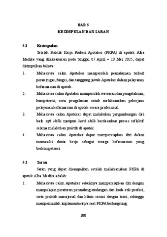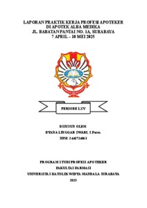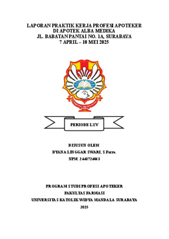 Swari, Dyana Linggar (2025) Laporan praktik kerja profesi apoteker di Apotek Alba Medika Jl. Babatan Pantai No. 1A, Surabaya 7 April - 10 Mei 2025. Project Report (PKL, PKIPP, Magang D3, Praktik Kerja Profesi Apoteker, Profesi Guru, Profesi Ners dan Profesi Insiyur). Faculty of Pharmacy, Surabaya. (Submitted)