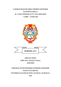 Anggle, Chelvina (2025) Laporan praktik kerja profesi Apoteker di Apotek Pahala Jl. Taman Pondok Jati C No.2 Sidoarjo 7 April-10 Mei 2025. Project Report (PKL, PKIPP, Magang D3, Praktik Kerja Profesi Apoteker, Profesi Guru, Profesi Ners dan Profesi Insiyur). Faculty of Pharmacy, Surabaya. (Submitted)
