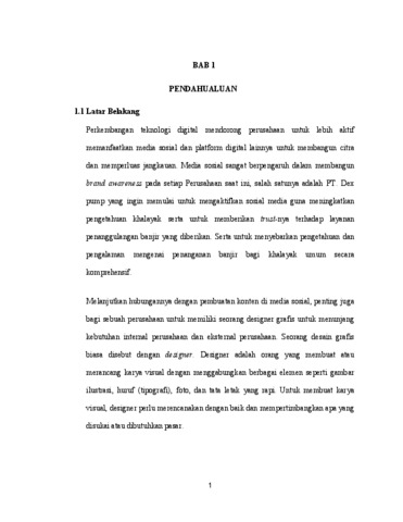 PT. Pompa Dex Indoguna Surabaya, sebagai perusahaan yang bergerak di bidang business-to-government (B2G) , mulai menyadari pentingnya peran desain grafis untuk membangun brand awareness di era digital. Namun, upaya pemasaran digital perusahaan belum berjalan maksimal, salah satunya karena keterbatasan dalam pengelolaan konten. Penelitian ini bertujuan untuk mengidentifikasi dan menjalankan peran designer grafis guna mendukung strategi komunikasi dan pemasaran perusahaan, baik untuk kebutuhan internal maupun eksternal. Metode yang digunakan adalah kerja praktek selama dua bulan dengan penempatan sebagai content creator pada divisi design graphic. Selama kerja praktek, penulis terlibat dalam berbagai proses kreatif, mulai dari pembuatan script video (company profile dan onboarding), perancangan media promosi cetak seperti notebook dan mug , hingga produksi konten digital untuk media sosial Instagram (desain feeds, story, dan poster hiring) , serta penulisan caption. Hasil kegiatan menunjukkan bahwa desain grafis berperan penting dalam membantu aktivitas promosi offline dan online perusahaan. Akan tetapi, implementasinya masih terbatas oleh sifat bisnis B2G yang membuat perusahaan berhati-hati dalam merilis konten dan belum adanya divisi kreatif yang permanen.