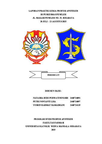 Purwatiningsih, Natasha Budi, Lisa, Putri Novianti and Ramadhani, Yusrin Rahmat (2025) Laporan praktik kerja profesi apoteker di Puskesmas Peneleh Jl. Makam Peneleh No. 35, Surabaya 28 Juli-23 Agustus 2025. Project Report (PKL, PKIPP, Magang D3, Praktik Kerja Profesi Apoteker, Profesi Guru, Profesi Ners dan Profesi Insiyur). Faculty of Pharmacy, Surabaya. (Submitted)