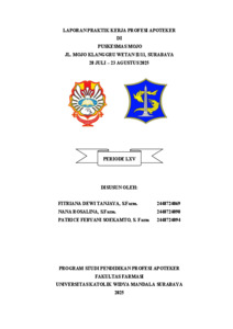Rosalina, Nana, Tanjaya, Fitriana Dewi and Soekamto, Patrice Febyani (2025) Laporan praktik kerja profesi apoteker di Puskesmas Mojo Jl. Mojo Klanggru Wetan II/11, Surabaya 28 Juli – 23 Agustus 2025. Project Report (PKL, PKIPP, Magang D3, Praktik Kerja Profesi Apoteker, Profesi Guru, Profesi Ners dan Profesi Insiyur). Faculty of Pharmacy, Surabaya. (Submitted)