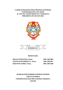 Putra, Brilliant Dwi, Yulianto, Ignatia Putri Febriana and Anisa, Rike Putry Andika (2025) Laporan Praktek Kerja Profesi Apoteker di Puskesmas Pucang Sewu Jl. Pucang Anom Timur No.72 Surabaya Periode 02 Juni-28 Juni 2025. Project Report (PKL, PKIPP, Magang D3, Praktik Kerja Profesi Apoteker, Profesi Guru, Profesi Ners dan Profesi Insiyur). Faculty of Pharmacy, Surabaya, Indonesia. (Submitted)