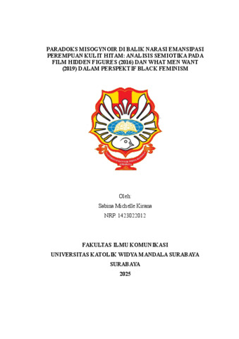 Kirana, Sabina Michelle (2025) Paradoks misogynoir di balik narasi emansipasi perempuan kulit hitam: analisis semiotika pada film Hidden Figures (2016) dan What Men Want (2019) dalam perspektif black feminism. Undergraduate thesis, Widya Mandala Surabaya Catholic University.