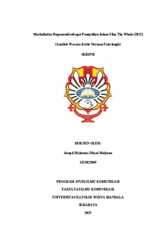 Mulyono, Joseph Mahatma Dhani (2025) Maskulinitas Hegemonik sebagai Panoptikon dalam Film The Whale (2022) (Analisis Wacana Kritis Norman Fairclough). Undergraduate thesis, Widya Mandala Surabaya Catholic University.