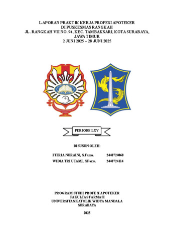 Utami, Widia Tri and Nuraini, Fitria (2025) Laporan praktik kerja profesi Apoteker di Puskesmas Rangkah Jl. Rangkah VII No. 94, Kec. Tambaksari, Kota Surabaya, Jawa Timur 2 Juni 2025-28 Juni 2025. Project Report (PKL, PKIPP, Magang D3, Praktik Kerja Profesi Apoteker, Profesi Guru, Profesi Ners dan Profesi Insiyur). Faculty of Pharmacy, Surabaya. (Submitted)