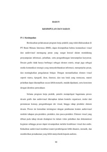Desain grafis dan komunikasi visual memiliki peran strategis dalam mendukung penyampaian informasi pada organisasi modern, termasuk dalam proses pelatihan dan pengembangan karyawan. Selama kerja praktik di PT Bumi Menara Internusa (BMI), penulis terlibat dalam perancangan berbagai materi visual dan audiovisual untuk mendukung kegiatan Learning, Career & Development, mulai dari penyusunan konsep, pengembangan ide, produksi desain statis, hingga pembuatan video motion graphic. Penerapan prinsip komunikasi visual seperti hierarki informasi, tipografi yang konsisten, pemilihan warna sesuai identitas perusahaan, serta penyusunan layout yang terstruktur terbukti membantu meningkatkan kejelasan materi pelatihan dan mempermudah pemahaman audiens. Hasil kegiatan menunjukkan bahwa media visual dan audiovisual tidak hanya berfungsi sebagai elemen estetis, tetapi juga sebagai sarana komunikasi yang efektif dalam menyederhanakan informasi teknis dan menjaga konsistensi identitas perusahaan. Pengalaman ini memberikan wawasan mendalam mengenai pentingnya strategi komunikasi visual dalam mendukung proses pembelajaran internal dan meningkatkan kualitas penyampaian materi pelatihan.