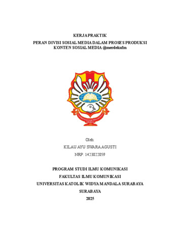 Agusti, Kilau Ayu Swara (2025) Peran divisi sosial media dalam proses produksi konten sosial media @merdekafm. Project Report (PKL, PKIPP, Magang D3, Praktik Kerja Profesi Apoteker, Profesi Guru, Profesi Ners dan Profesi Insiyur). Universitas Katolik Widya Mandala Surabaya. (Submitted)