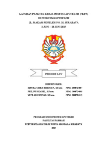Prameswari, Maura Citra Rheina, Karel, Philipus and Agustinah, Yeni (2026) Laporan praktek kerja profesi apoteker (PKPA) di Puskesmas Peneleh Jl. Makam Peneleh No. 35, Surabaya 2 Juni-28 Juni 2025. Project Report (PKL, PKIPP, Magang D3, Praktik Kerja Profesi Apoteker, Profesi Guru, Profesi Ners dan Profesi Insiyur). Faculty of Pharmacy, Surabaya. (Submitted)