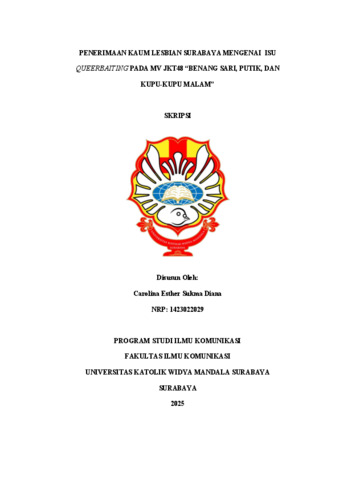Sukma Diana, Carolina Esther (2026) Penerimaan kaum lesbian surabaya mengenai isu queerbaiting pada MV JKT48 “benang sari, putik, dan kupu-kupu malam”. Undergraduate thesis, Widya Mandala Surabaya Catholic University.