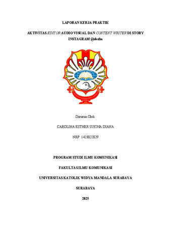 Diana, Carolina Esther Sukma (2025) Aktivitas editor audio visual dan content writer di story instagram @ebsfm. Project Report (PKL, PKIPP, Magang D3, Praktik Kerja Profesi Apoteker, Profesi Guru, Profesi Ners dan Profesi Insiyur). Faculty of Communication Science, Surabaya. (Submitted)