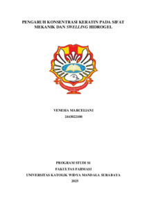 Marceliani, Venesia (2025) Pengaruh konsentrasi keratin pada sifat mekanik dan swelling hidrogel. Undergraduate thesis, Widya Mandala Surabaya Catholic University.