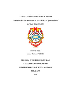 Christian, Imanuel (2024) Aktivitas content creator dalam memproduksi konten di instagram @sonorafm98. Project Report (PKL, PKIPP, Magang D3, Praktik Kerja Profesi Apoteker, Profesi Guru, Profesi Ners dan Profesi Insiyur). Faculty of Communication Science, Surabaya. (Submitted)