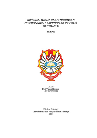 Eryanto, Noel Vincent (2025) Organizational climate dengan psychological safety pada pekerja generasi Z. Undergraduate thesis, Widya Mandala Surabaya Catholic University.