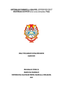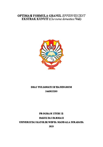 Setianingrum, Imas Yuliawati (2025) Optimasi formula granul effervescent ekstrak kunyit (Curcuma domestica val.). Undergraduate thesis, Widya Mandala Surabaya Catholic University.