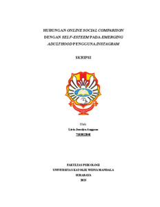 Anggono, Livia Jessalyn (2025) Hubungan online social comparison dengan self-esteem pada emerging adulthood pengguna instagram. Undergraduate thesis, Widya Mandala Surabaya Catholic University.