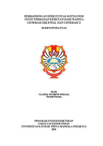 Widjaja, Claudia Sunshine (2025) Perbandingan efektivitas Botulinum Toxin terhadap keratin dahi Z.pada wanita generasi milenial dan generasi. Undergraduate thesis, Widya Mandala Surabaya Catholic University.